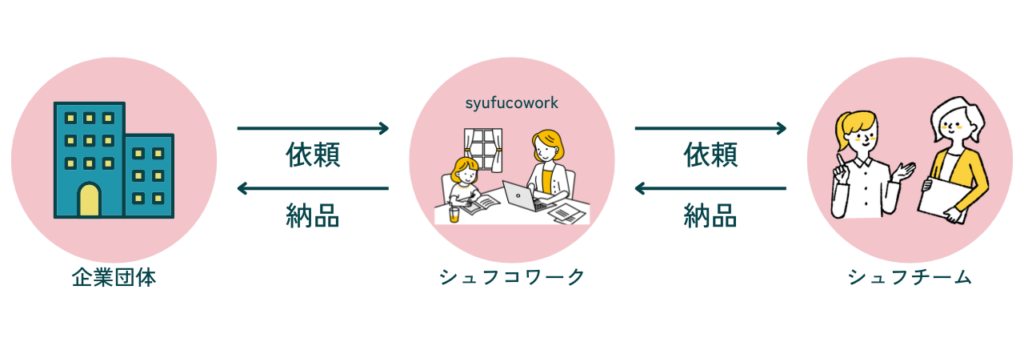 シュフコワークは、企業団体と自宅で子どもの近くで働きたい主婦をつなぐプロジェクトです。