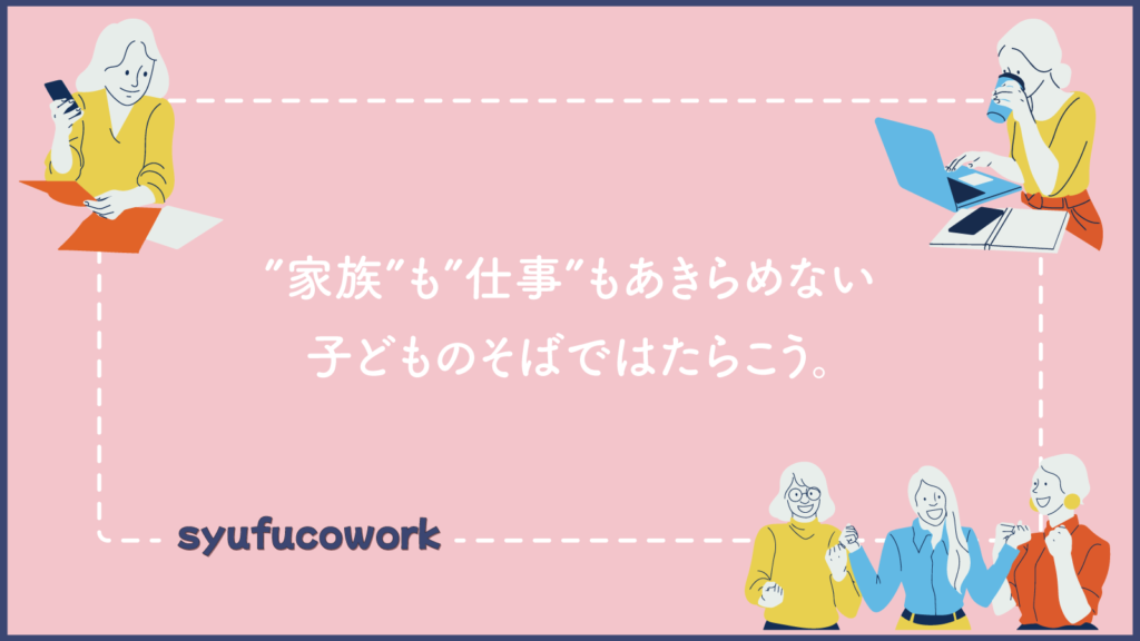 シュフコワークでは、「家族も仕事もあきらめない」をミッションに掲げ、「仕組み」と「場所」で解決します!